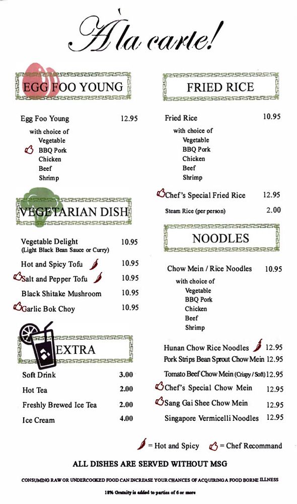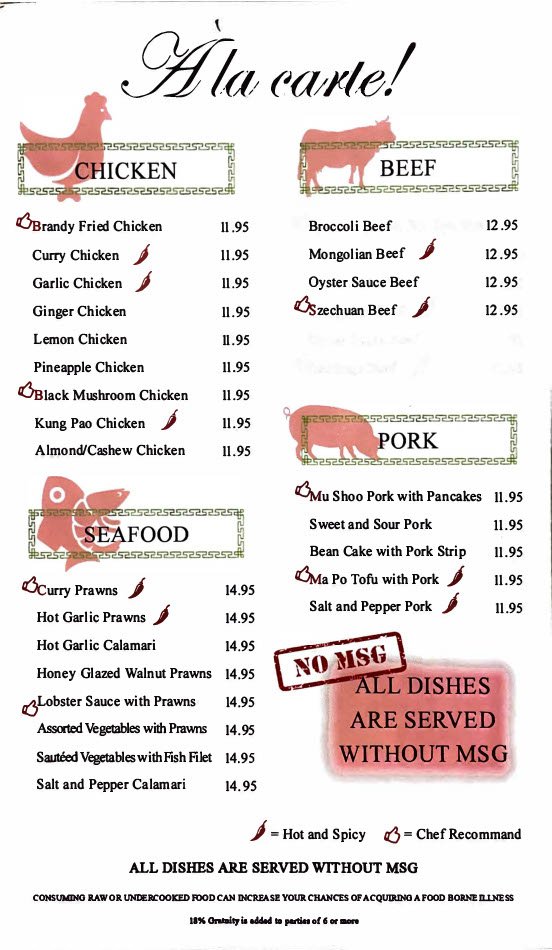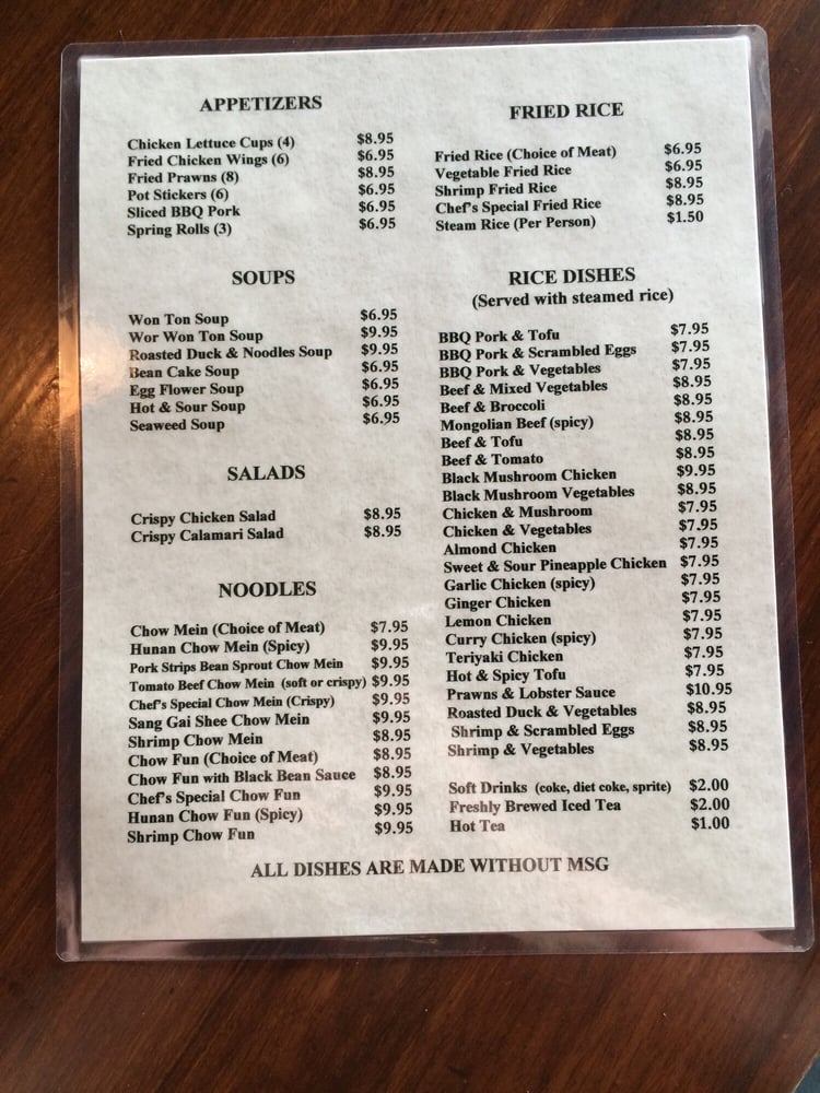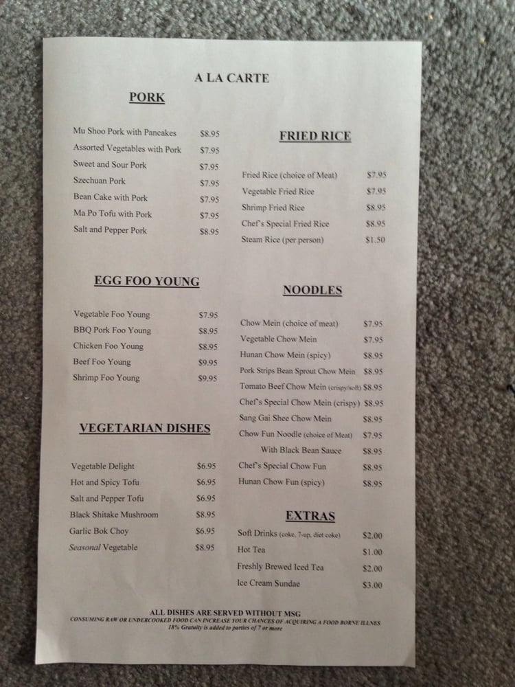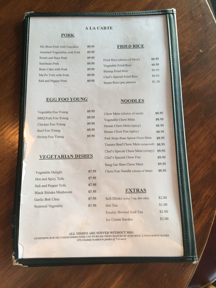 The menu showcases classic Chinese delights such as won ton soup, Kung Pao chicken, and the cherished brandy fried chicken, a customer favorite. Late-night offerings like chow mein and spring rolls are perfect after an exciting evening out. Plus, the bar is well-stocked with reasonably priced drinks and happy hour specials.